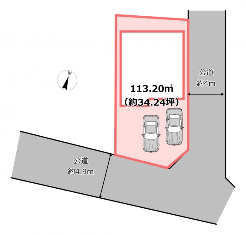 南側 公道4.9m 間口約5.8m - 土地面積